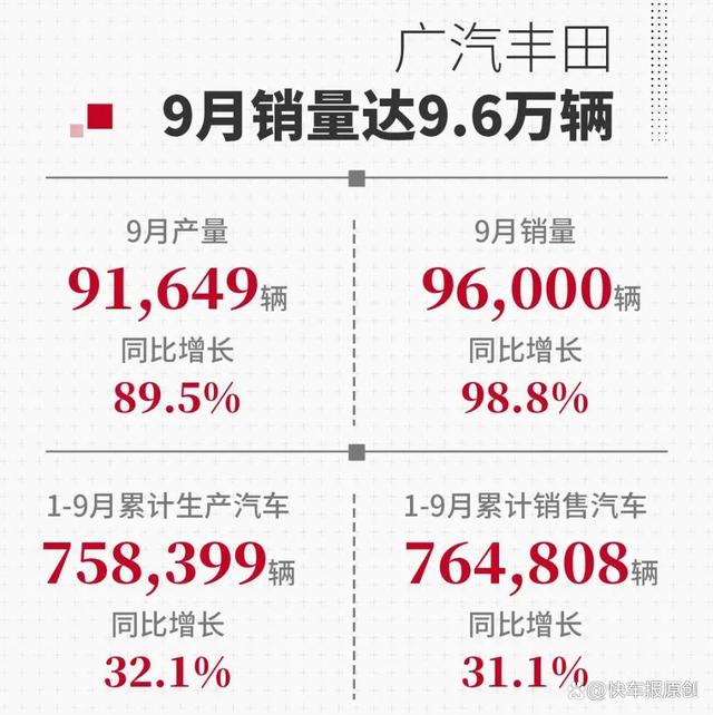 广汽丰田9月产销数据