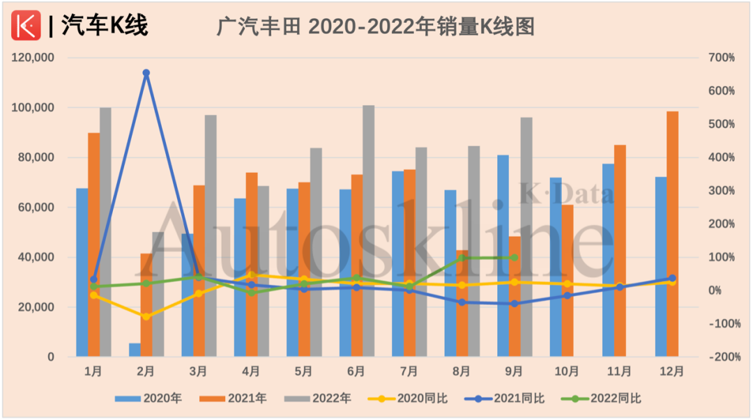 数据显示,9月广汽丰田生产9.16万辆,同比增长89.49%,销售9.6万辆,同比增幅达到98.76%,接近翻番,连续6个月保持增长。其单月产销在整个广汽集团中的占比,也与去年同期相比提升了大约10个百分点。