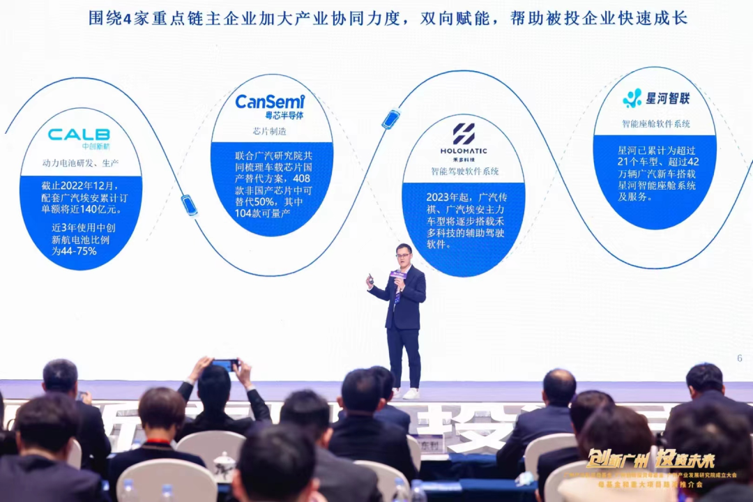 广汽集团董事长曾庆洪受邀参加成立大会并作为产业代表发言,表示广汽集团计划在广州产业投资母基金支持下设立规模为300亿元的广州智能网联新能源汽车产业发展基金(下称“汽车产业发展基金”),集中投资智能网联汽车产业链上的重点项目,以及广汽内部孵化拟上市的重点项目,打造大湾区世界级智能网联新能源汽车产业集群。