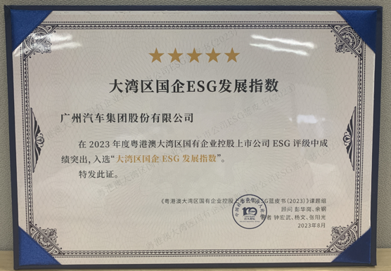 5、“大湾区国企ESG发展指数先锋30”榜单,广汽集团位列第1位。