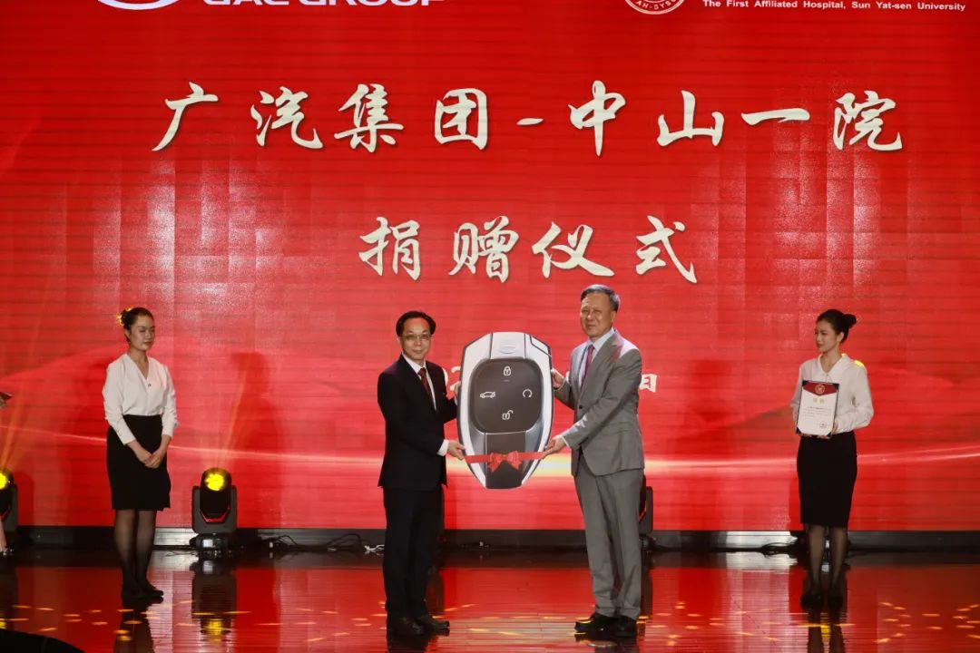 8月16日,广汽集团在中山大学附属第一医院(以下简称“中山一院”)2023年中国医师节主题大会上向中山一院捐赠了2辆广汽传祺M8商务车,用于中山一院对基层医院的“一对一”帮扶工作,为派驻医疗专家深入边远地区提供安全可靠且舒适的出行保障。广汽集团纪委书记林永亮出席活动并代表广汽向中山一院交车。