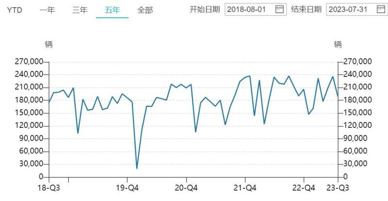 根据43个季度的销量对比不难发现,广汽丰田在2022年销量达到峰值后在2023年略有下滑,广汽本田则在2022年就已出现了销量下滑的问题。在2023年年初,广汽本田也没有恢复到2020年和2021年的情况。