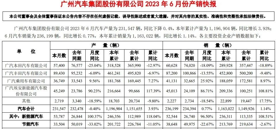 换句话说,不管怎么比,广汽集团2023上半年的销售增长非常低,跑输了大盘。