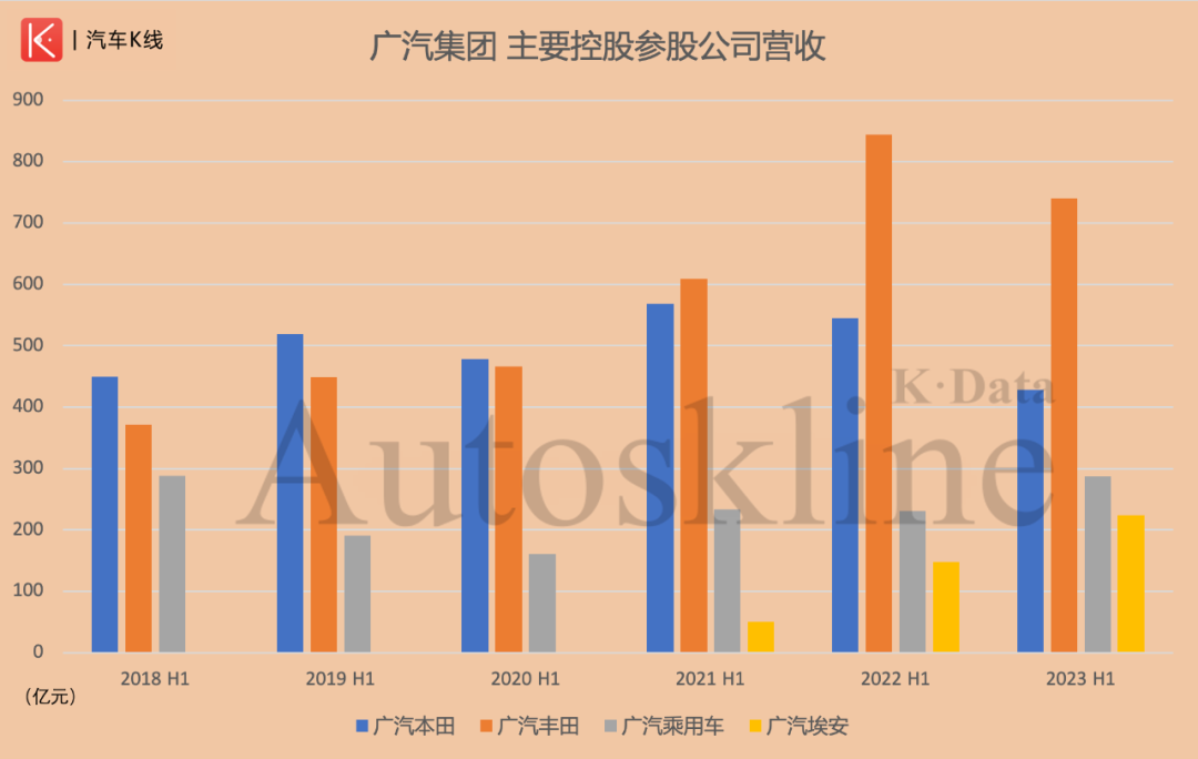 《汽车K线》曾在文章《为什么说广汽丰田“裁员”,打了广汽集团的脸?》中介绍过两大合资公司在产销方面对广汽集团的增速造成拖累。透过半年报,两大合资公司营收折戟,更是对广汽集团整体营收带来了不利影响。