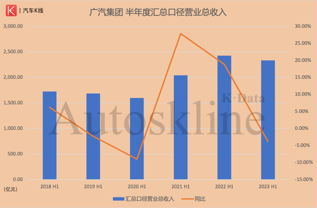 财报显示,广汽集团2023上半年汇总口径营业总收入为2335.32亿元,同比下降3.81%,从某种意义上来说,两大合资公司在营收上的纷纷折戟,在一定程度上造成了广汽集团汇总营收败给比亚迪的尴尬局面。