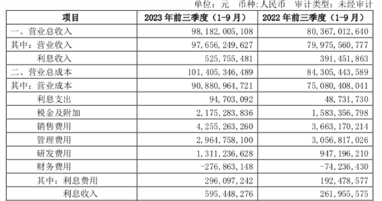 报告显示,前三季度,公司实现合并营业总收入981.8亿元,同比增长22.2%;第三季度归母净利润15.45亿元,单季度环比增长8.1%。前三季度毛利率为5.12%,同比提升0.58%;第三季度毛利率实现8.17%,同比增加3.53%。