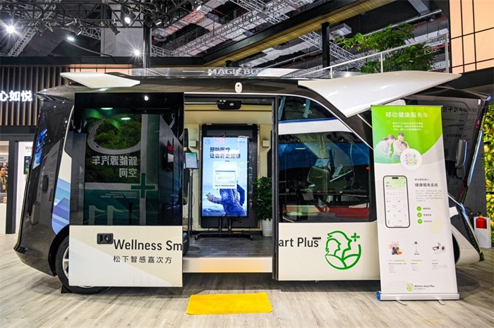 本次进博会上,松下展出了自动驾驶型健康服务车。该展品在广汽的MagicBox自动驾驶型平台上,搭载医用检测设备,能够测量身体数据,监测疾病迹象。同时,可以将积累的健康数据进行分析,一方面,将数据推送至合作医疗机构,另一方面给出指导性康复方案。伴随着人们对健康的重视,大健康领域市场需求将不断增加,相关方面的政策出台也将给予该领域发展强有力的支持。