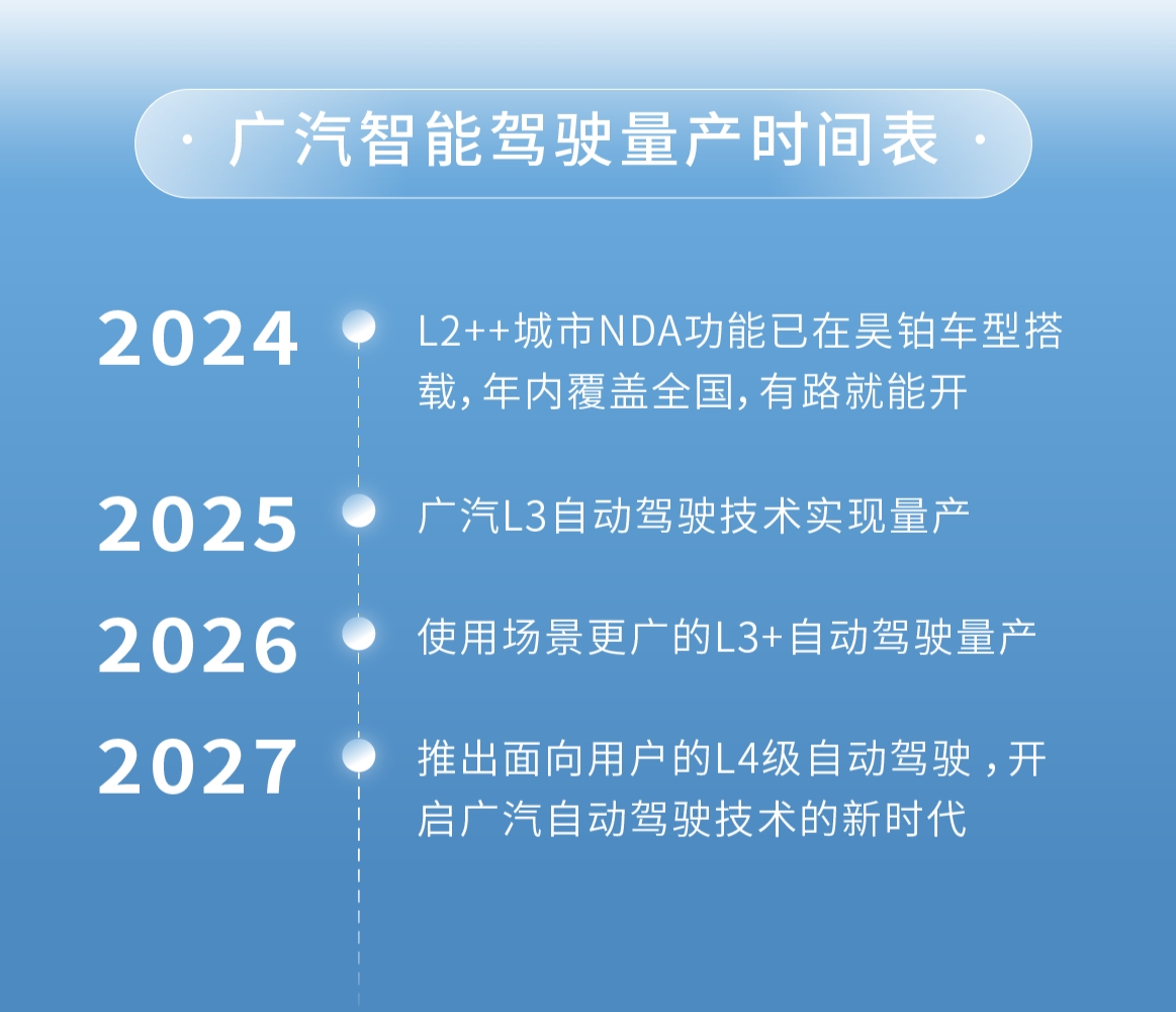 在智能座舱方面,今年,广汽集团将量产“广汽端云一体大模型智能体”;2025年,广汽车载空间交互系统将突破屏幕限制,实现虚拟现实混合交互;2026年,广汽集团将建成涵盖生活娱乐、车家互联、健康服务的完整运营体系;2027年,实现智能座舱全场景、全智能的主动式情感交互。