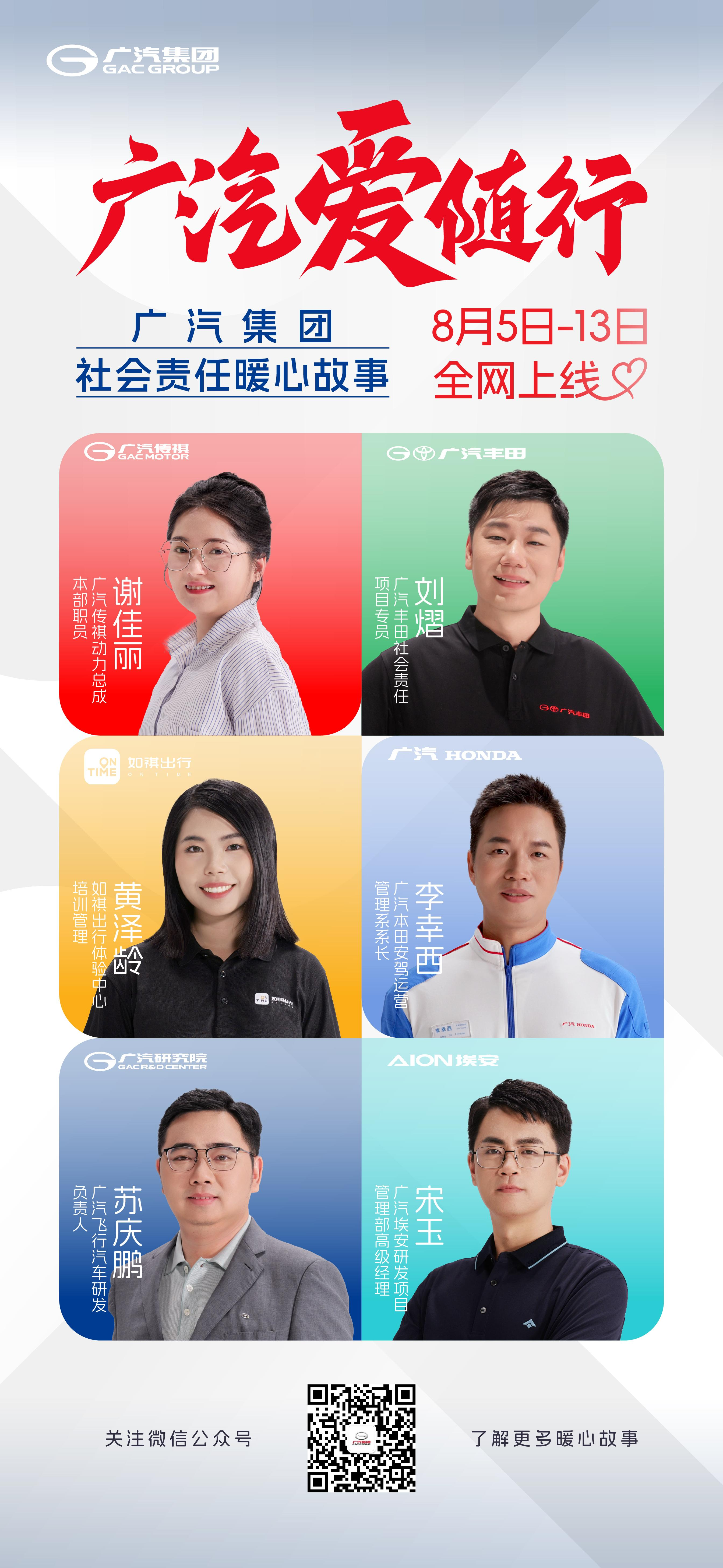 8月5日,广汽集团ESG/社会责任暖心故事视频全网上线。今年,广汽集团联动6家投资企业和机构——广汽传祺、广汽埃安、广汽本田、广汽丰田、广汽研究院及如祺出行,采用专题视频方式,分享广汽集团积极践行ESG和履行社会责任背后的感人故事和亮眼成果。