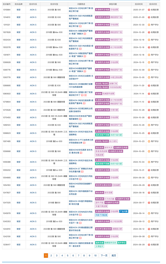 在国内某汽车质量投诉平台光埃安S这一款车的投诉量就在数百条。