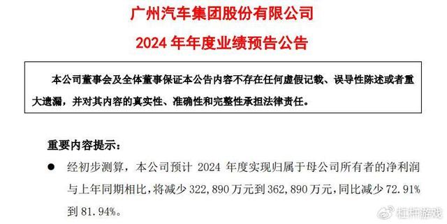 日前,广汽集团发布了其2024年年度业绩预告公告。