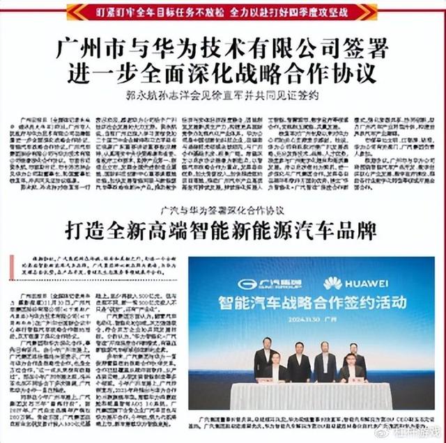 《广州日报》说,“华为智能化+广汽智造”开启深度合作新模式,有望在新能源汽车领域创造新的成就。