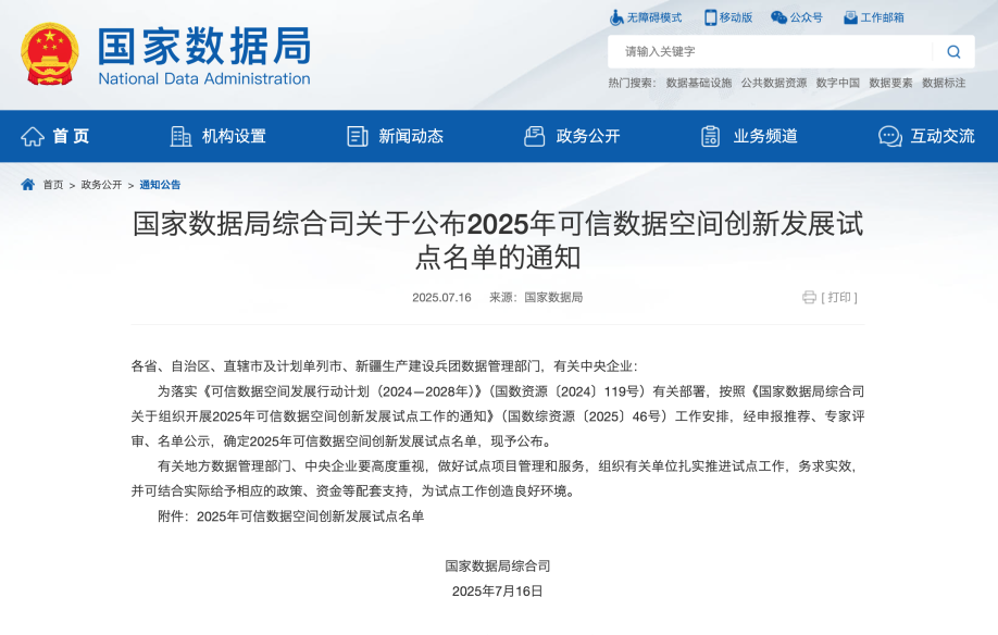 国家数据局公布2025年可信数据空间创新发展试点名单