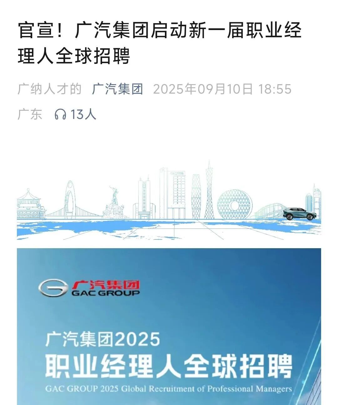 近日,广汽集团发布消息称,启动新一届职业经理人全球招聘,其中包括招聘总会计师1名。