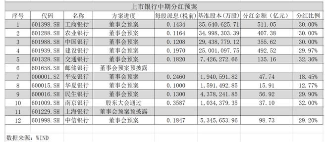 截至9月4日,A股42家上市银行的中期业绩报告均已披露完毕,一起出炉的还有中期分红预案。