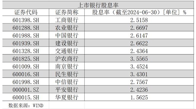 南京银行和民生银行的股息率均在3.4%附近,分别为3.4524%和3.4301%。