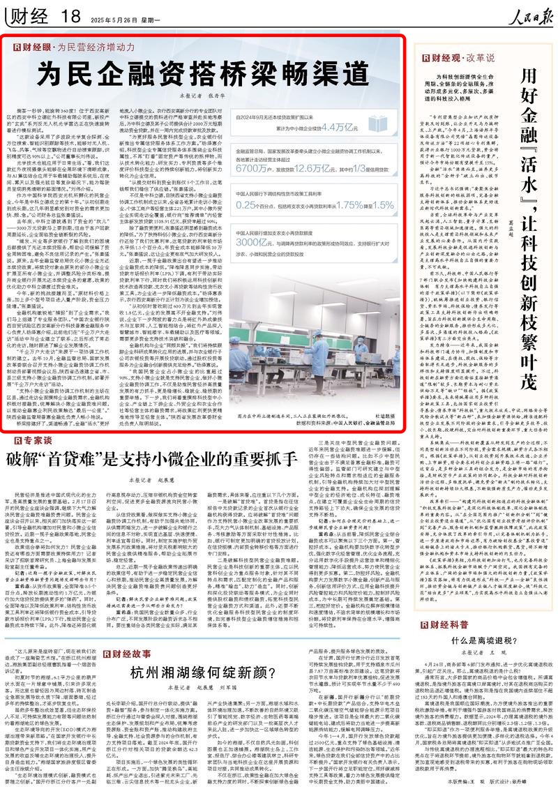 近日,《人民日报》刊发《为民企融资搭桥梁畅渠道》,报道农业银行落实支持小微企业融资协调工作机制,为民营科技型企业提供贷款,给予优惠利率,帮助企业渡过资金难关。