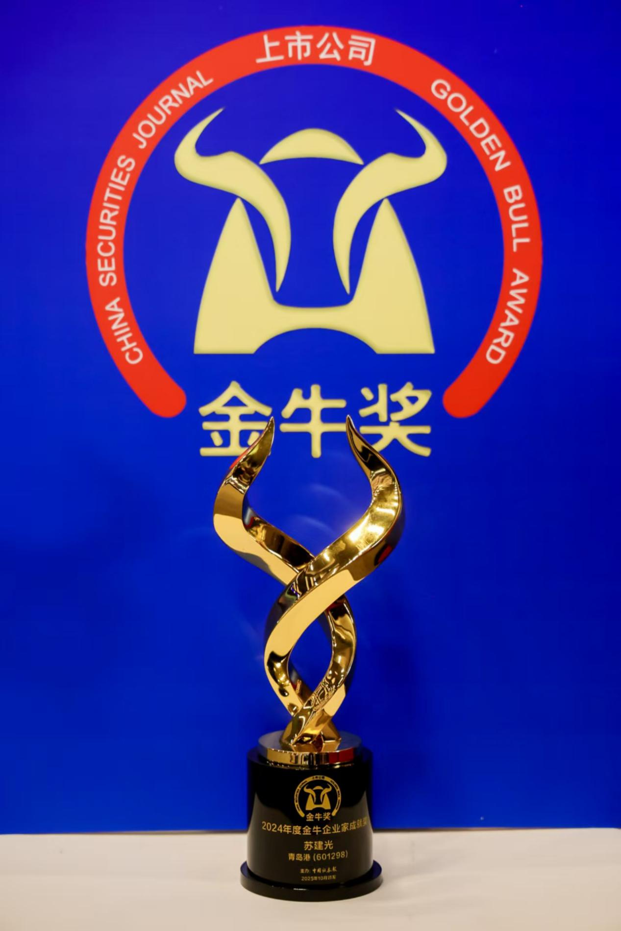 10月29日,2025上市公司高质量发展论坛暨第二十七届上市公司金牛奖颁奖典礼在江苏南通举行。本届论坛以“向新而行以实致远智启未来”为主题,备受瞩目的上市公司金牛奖榜单揭晓,青岛港董事长苏建光荣获“2024年度金牛企业家成就奖”。
