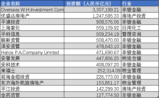 就投资额来看,非银金融、房地产、物业管理依然占据着榜单前列。