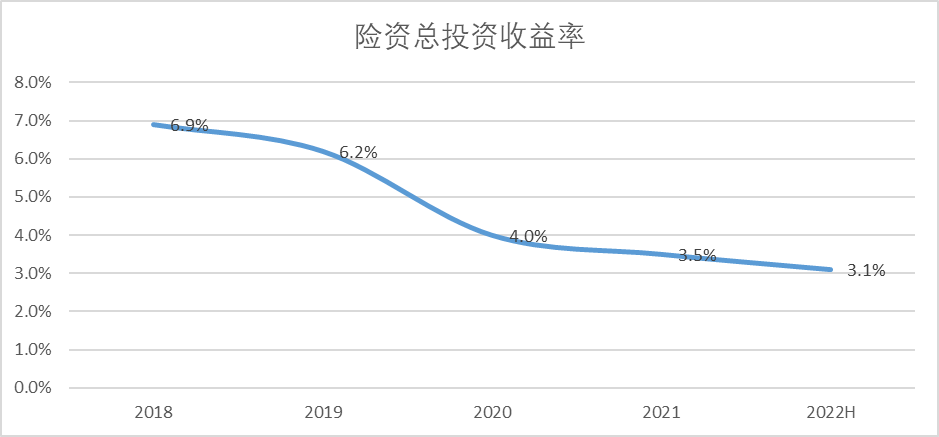 虽然由于外部环境压力导致各家险企的收益率都有所下滑,但是平安的下滑最为明显,由2017年的5.8%下滑至最新报告期的3.9%。单看平安的保险资金总投资收益率,由2018年的6.9%大幅下降至今年中报期的3.1%,收益水平打了对折。