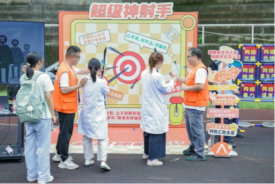 金融反诈扭蛋机前总是充满惊喜的欢呼,大家轻轻一转,就能扭出一个个藏着反诈秘诀的“幸运彩蛋”,在义警队员风趣的讲解中,识破骗子的套路。另一边,“击破骗局”神射手区域更是人气爆棚,参与者们举枪瞄准,精准“击破”一个个写有诈骗类型的标靶,在阵阵喝彩声中,把防骗意识“射”入心中。