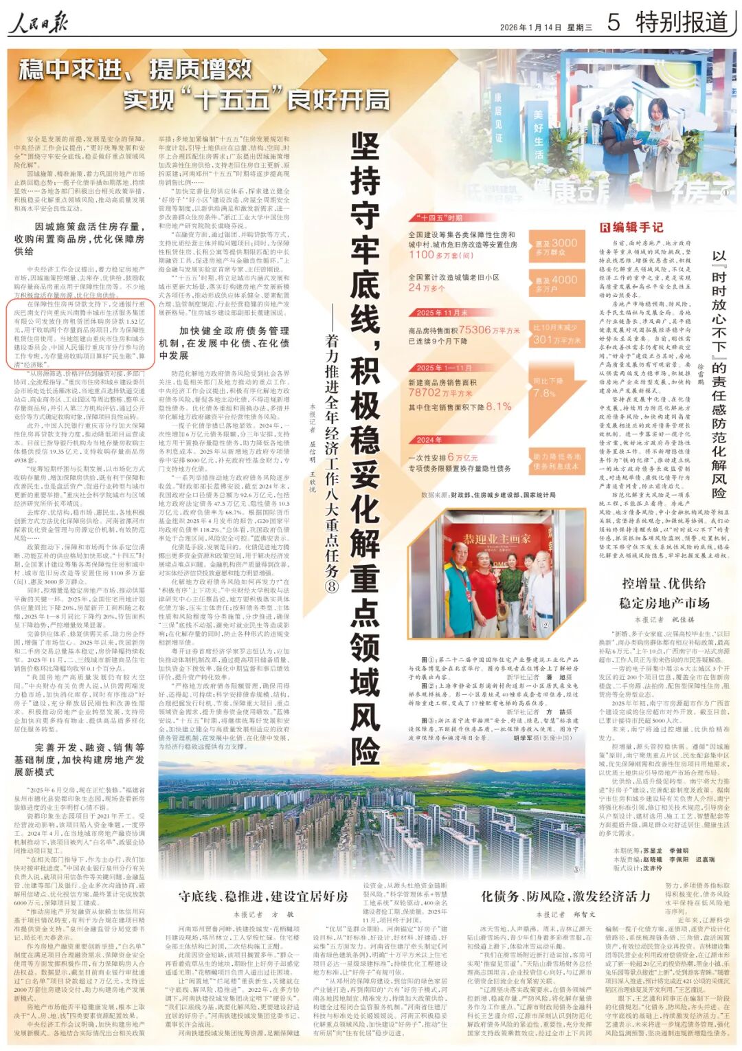 近日,《人民日报》“稳中求进、提质增效,实现‘十五五’良好开局”特别报道刊发《坚持守牢底线,积极稳妥化解重点领域风险——着力推进全年经济工作八大重点任务⑧》,报道了交通银行重庆市分行为重点保障性住房项目量身定制融资方案,支持保障性住房建设,为存量房收购项目算好“民生账”、算清“经济账”。