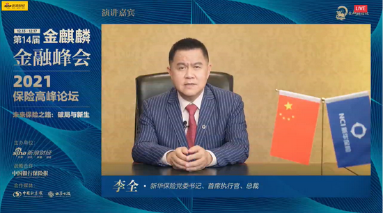 12月14日消息,由新浪财经主办的“第14届金麒麟金融峰会”于12月13日-17日隆重举行,主题论坛“2021金麒麟保险高峰论坛”今日召开。新华保险党委书记、首席执行官、总裁李全在论坛上发表主题演讲。