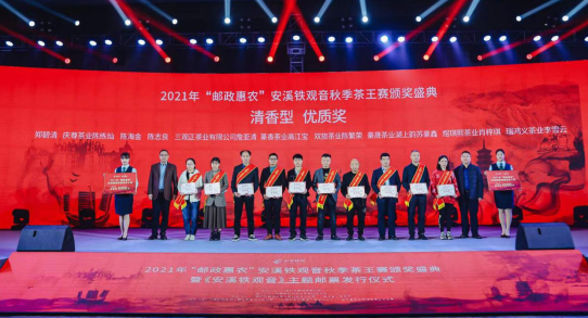 12月26日,2021年安溪铁观音秋季茶王赛颁奖盛典在泉州泰禾洲际酒店举行,现场颁发了包括浓香型、清香型两大品种的茶王、金奖、银奖、铜奖和优质奖。福建省政协农业和农村委员会主任刘宏伟,泉州市政协党组成员黄世界,福建省气象服务中心副主任陈艺芳,中共安溪县委副书记、县茶管委主任洪金城等政府领导和嘉宾出席活动。新华保险泉州中心支公司作为赛事赞助合作企业,对于本次活动进行大力支持。
