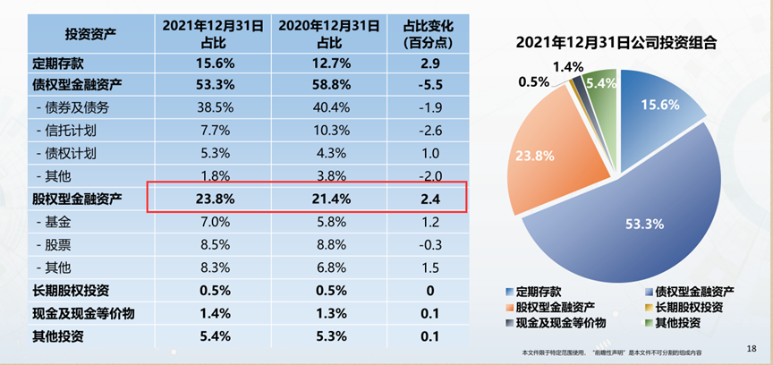 自2018年以来,新华保险投资资产不断增加,从6998.26亿元逐步增长至2021年的1.08万亿元,占总资产的比例在四年时间里均超95%以上,可见投资对于新华保险来说占据举足轻重的地位。