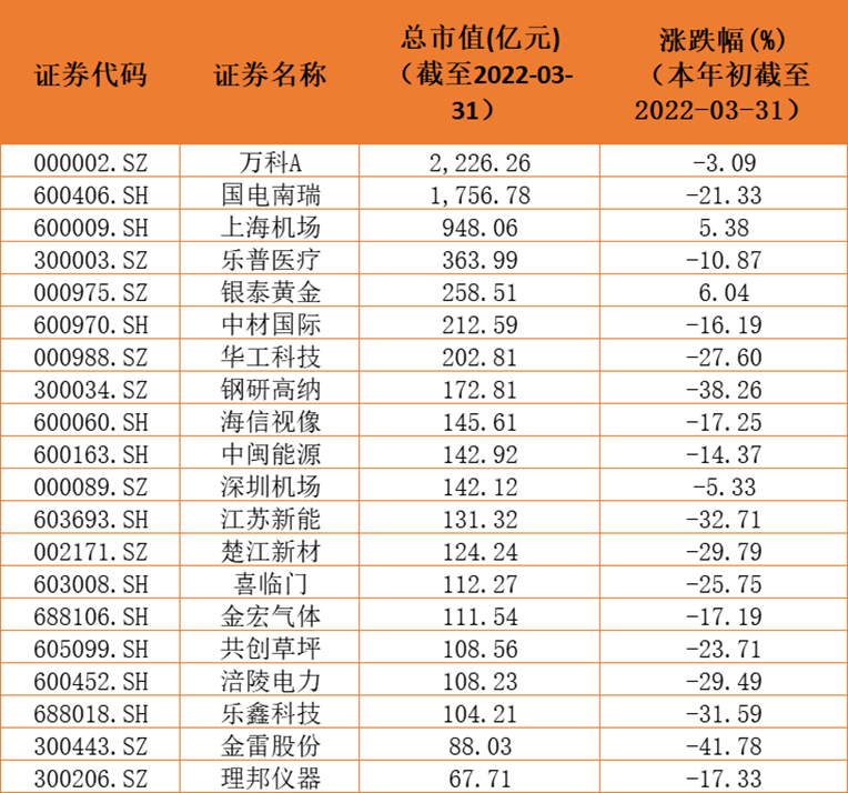 细观这20家上市公司,截至今年一季度末,除万科A、国电南瑞市值超千亿元以及上海机场市值接近千亿元外,包括海信视像、深圳机场、涪陵电力在内的11家上市公司的市值均在100亿元以上,还有两家上市公司金雷股份与理邦仪器的市值不足百亿元,这意味着新华保险偏爱投资中小市值股票。
