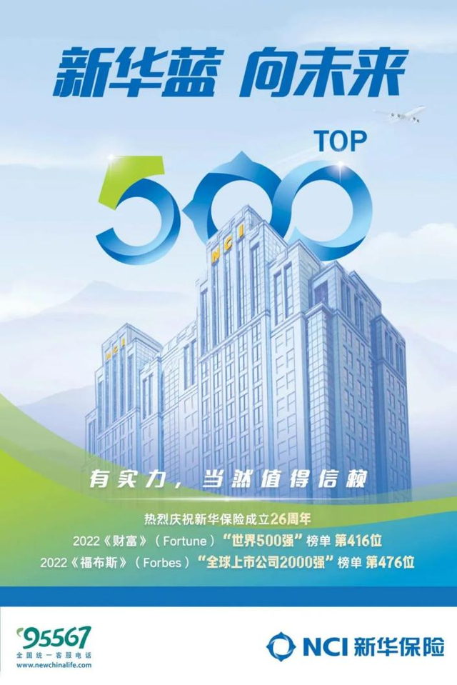 8月3日,2022年《财富》(Fortune)世界500强排行榜正式发布。新华保险以344.76亿美元营业收入成功入榜。这是新华保险继今年5月入围《福布斯》(Forbes)“全球上市公司2000强”榜单前500名后又获认同,再度成为“双世界500强”企业。