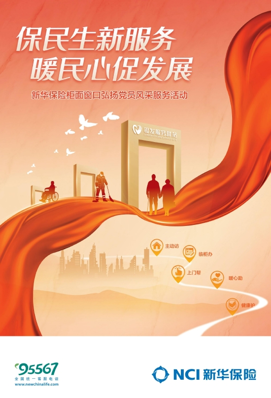 新华保险秉承“保民生新服务,暖民心促发展”的服务理念,全面升级柜面窗口服务。根据客户需求提供“智能+人工”多种服务方式,推出“主动访”“临柜办”“上门帮”“暖心助”“健康护”五类专属关爱服务。