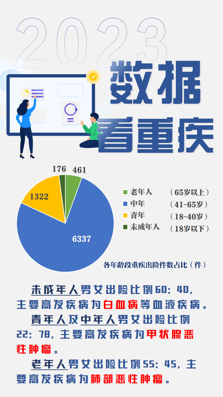 从理赔数据可以看到,各年龄段中重疾出险最多的就是中年人,尤其中年人作为家里的顶梁柱,罹患重大疾病后不但需要高昂的治疗费用,还可能面临着收入中断,所以其实一个家庭中,中年人最需要完备的保险保障。