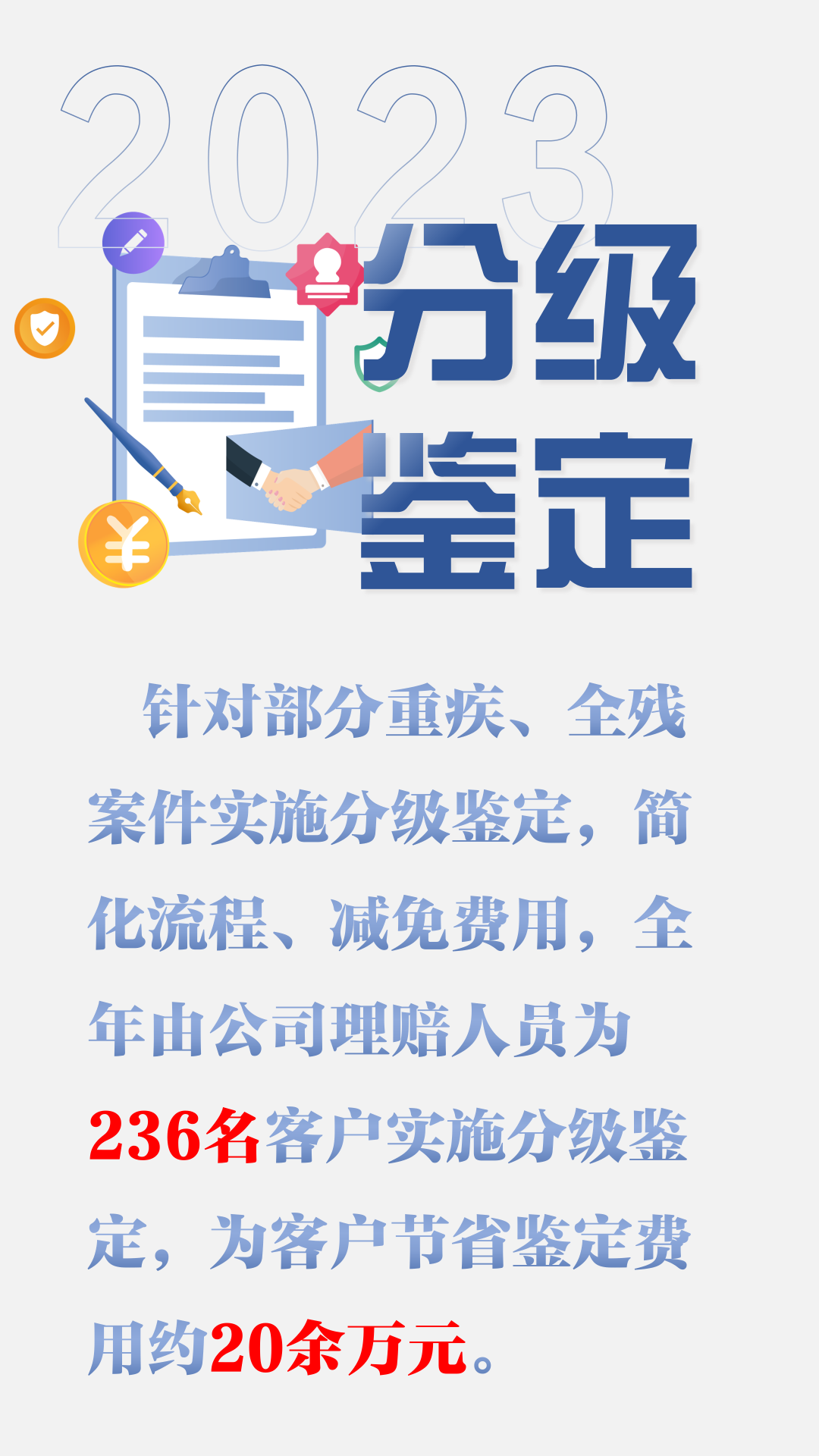接下来这项服务大部分客户没有接触过,可对符合标准的客户而言却省下了理赔申请的大麻烦。按照保险条款约定,部分重疾和全残申请,需要客户在指定的鉴定机构实施鉴定。为了解决因身体健康状况不方便前往鉴定机构等情况,对于符合一定条件的客户,公司理赔人员可以前往客户指定地点进行分级鉴定并协助申请理赔。