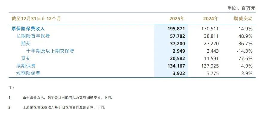 新华保险2025年度报告提到,首期业务与续期业务协同发展,共同拉动公司保费收入稳定增长。这说明新华保险的人身险经营已经不再只是前端跑得快,续期业务也在托住基本盘。换言之,新华保险的“后劲”既来自新单推动,也来自续期业务本身的累积。