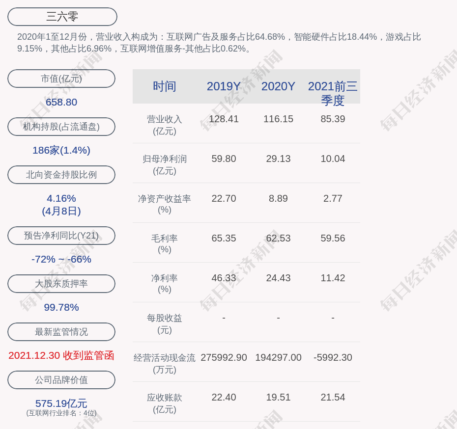 1.三六零近30日内北向资金持股量增加1172.23万股,占流通股比例增加0.17%;