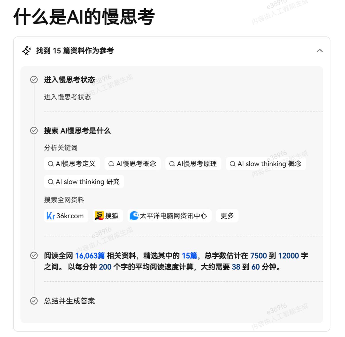 首先是门槛,原生AI搜索场景中调用DeepSeek也好,使用其他大模型或者混合调用也好,都没有额外的部署门槛,原生AI搜索的多模态等特性也是完整的。并且,纳米AI搜索还会提供参考、联想信息,通过为用户提供灵感,丰富搜索体验。纳米AI搜索自身的用户粘性也会随之提升。