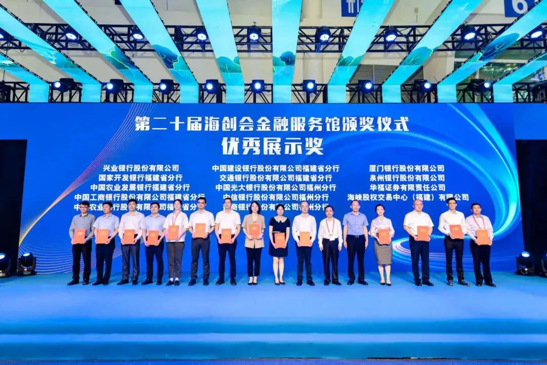 6月20日,第二十届中国·海峡创新项目成果交易会在福州海峡国际会展中心闭幕。兴业证券集团亮相金融服务馆,以良好的精神面貌、新颖的展位设计、互动式的活动策划、立体化的宣传推广,获得现场观众和评审专家的一致好评,从一千多家参展单位中脱颖而出,荣获组委会颁发的“创意设计奖”“最佳宣传推广奖”;海峡股交荣获“优秀展示奖”。
