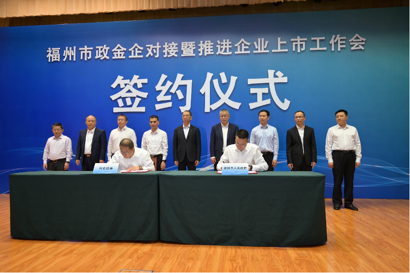 10月27日,福州市政金企对接暨推进企业上市工作会召开。福州市市长吴贤德出席会议并讲话,中国人民银行福建省分行行长张庆昉、中国证券监督管理委员会福建监管局局长林林、省地方金融监督管理局副局长吴志勇、国家金融监管总局福建监管局副局长王勇、中国证券监督管理委员会福建监管局副局长翁国斌,福州市和福州新区领导张定锋、陈斌出席会议。兴业证券总裁刘志辉、副总裁孔祥杰受邀出席会议,兴业证券与福州市人民政府在大会期间签署战略合作协议。