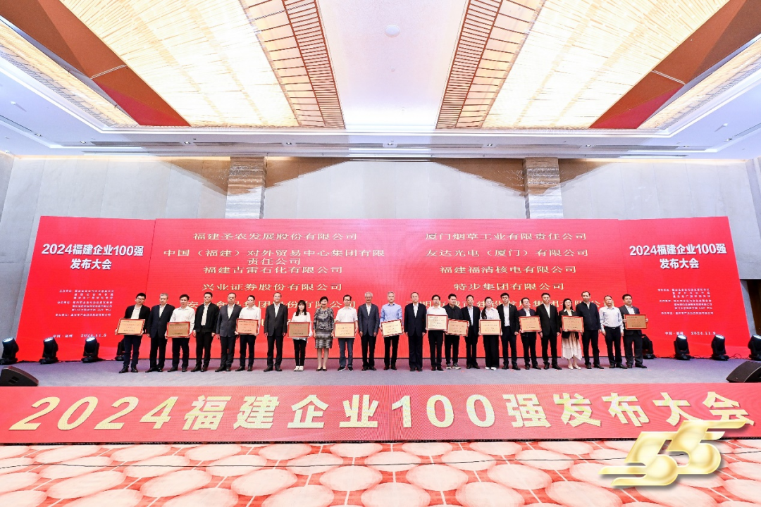 11月8日,“2024福建企业100强榜单”公布,兴业证券连续第七年荣膺福建企业百强称号,公司同时荣膺福建服务业企业百强称号。