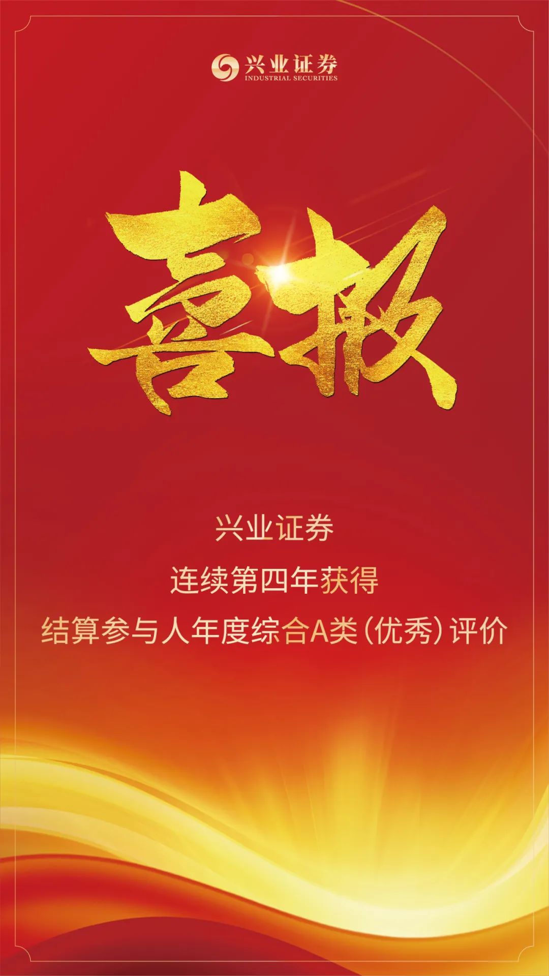 近日,中国证券登记结算有限责任公司(简称“中国结算”)公布了《结算参与人2023-2024年度综合评价结果》,兴业证券在参与评选的120家证券公司类结算参与人中表现卓越,再次荣膺最高等级“A类”(优秀)综合评级,至此已连续四年获此殊荣。