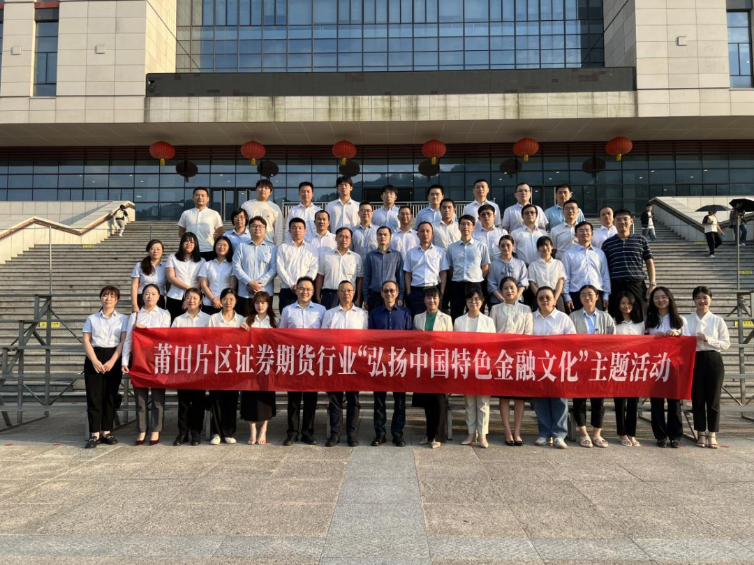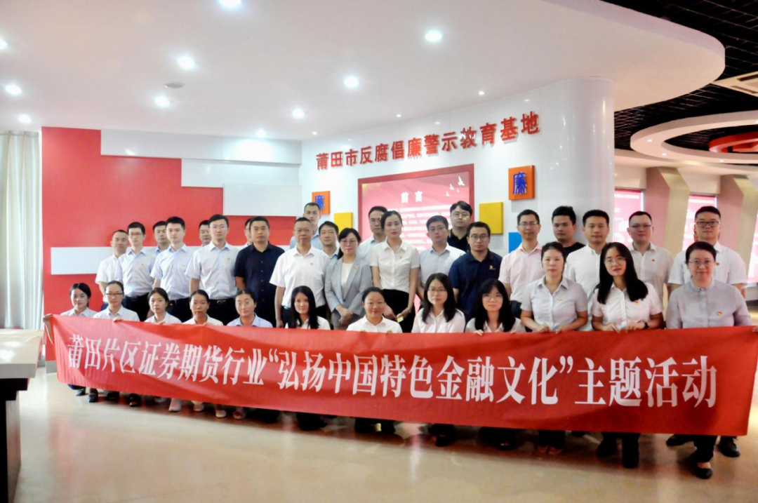 为积极落实福建辖区证券期货行业“弘扬中国特色金融文化”主题活动安排,莆田分公司牵头组织片区文化建设启动会;赴莆田市反腐倡廉警示教育基地——莆田监狱开展警示教育暨党建共建联建活动;通过培训会、投资沙龙等多种形式开展“牵手客户利他共赢”专项活动;积极制作“五要五不”相关标语、海报、壁纸等宣传材料;认真开展“一机构一丛书”读书活动;赴木兰溪治理展示馆开展“情系木兰溪”系列团日活动暨团建共建活动;开展“爱拼才会赢”木兰溪景拼图大赛;联合福建省证券期货业协会走进莆田学院开展“文化学堂”公开课活动,邀请莆田学院教授作《妈祖文化的前世与今生》主题授课,并参观了莆田学院妈祖文化艺术博物馆,探寻妈祖文化与中国特色金融文化的紧密联系及现代价值。
