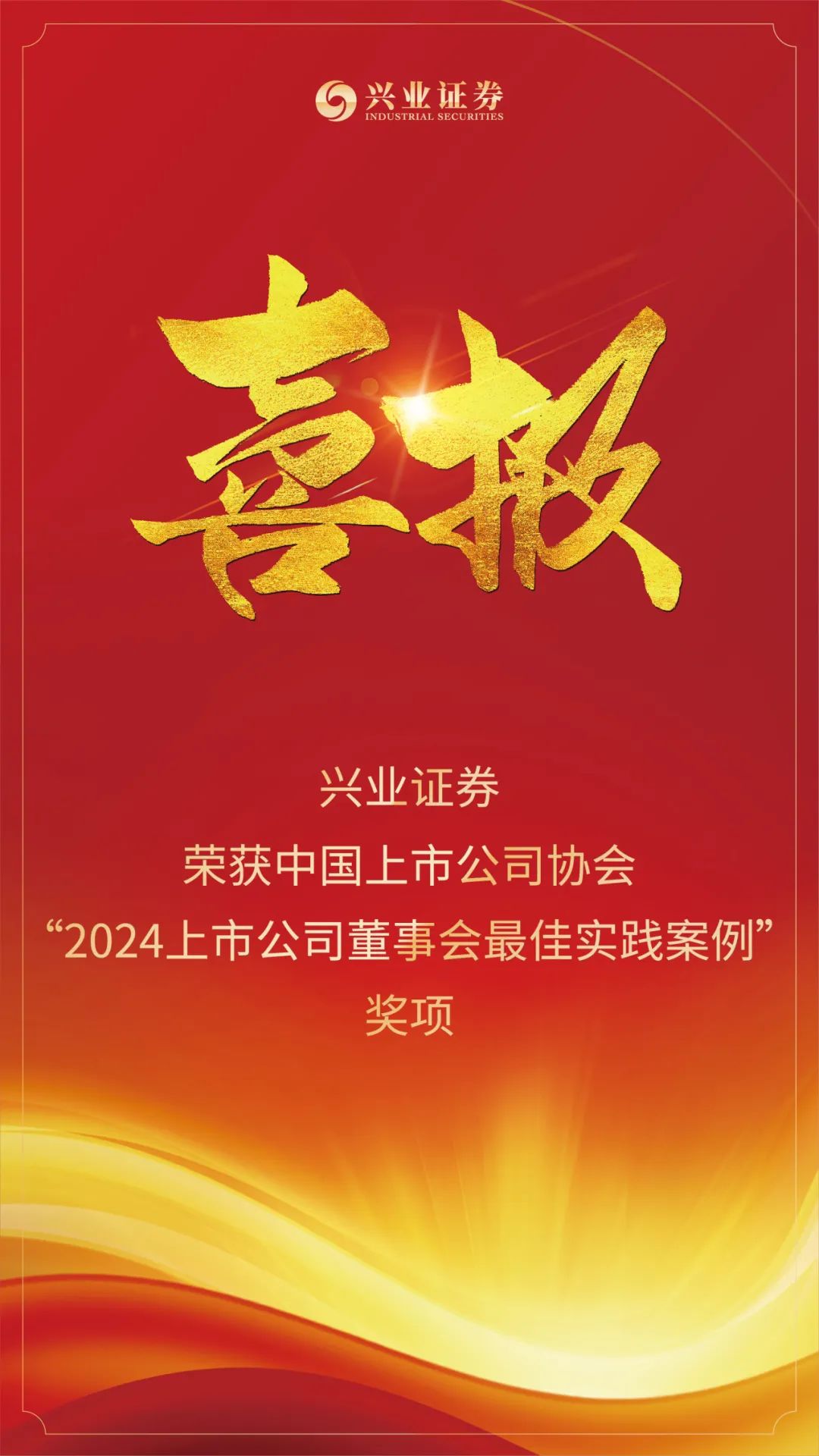 11月12日,中国上市公司协会揭晓2024上市公司董事会最佳实践案例结果,兴业证券董事会获评“2024上市公司董事会最佳实践案例”。