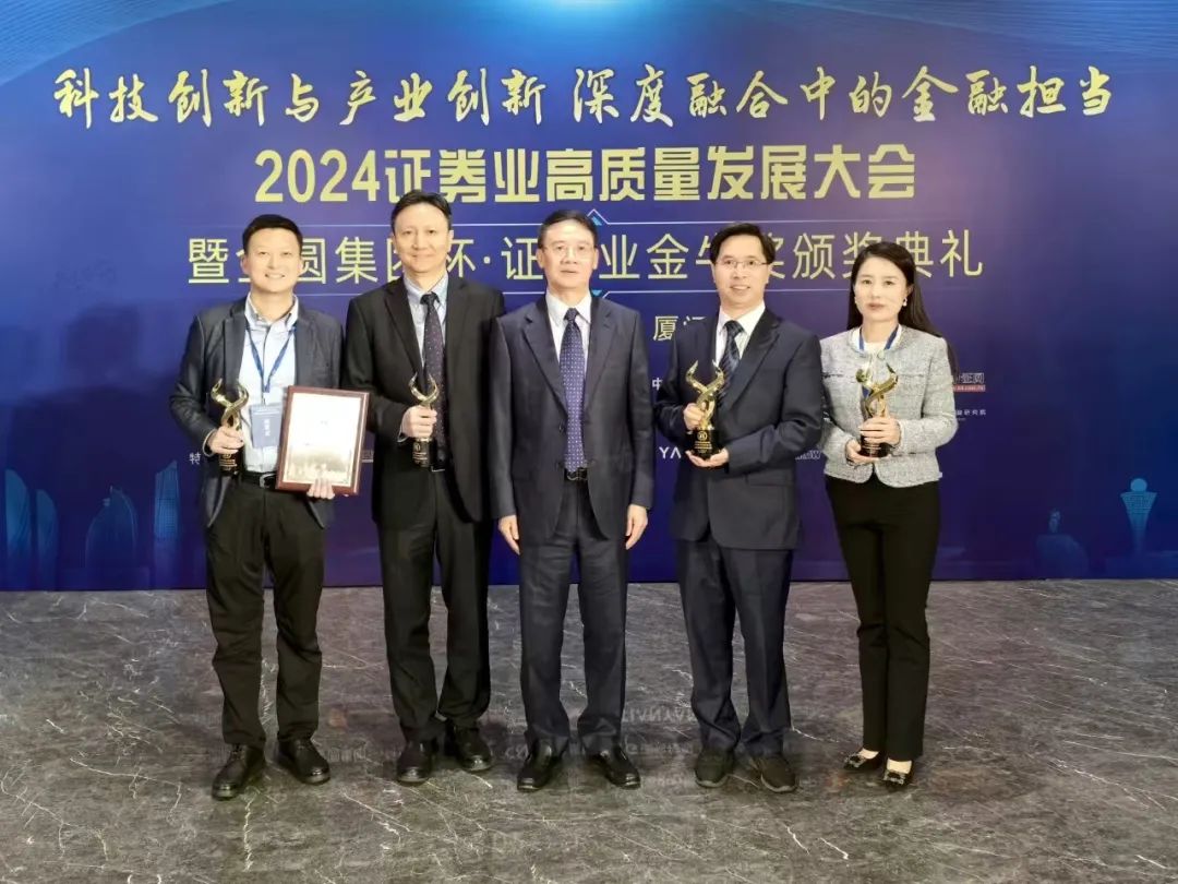 11月22日,2024证券业高质量发展大会暨金圆集团杯·证券业金牛奖颁奖典礼在厦门举办,兴业证券经济与金融研究院再次荣获“最佳金牛研究机构”,连续八年蝉联该奖项,策略/固定收益/金融工程/铁路、船舶、航空航天和其他运输设备制造业/电力、热力、燃气及水生产和供应业/批发和零售业等六个行业上榜分析师金牛奖研究类单项奖。