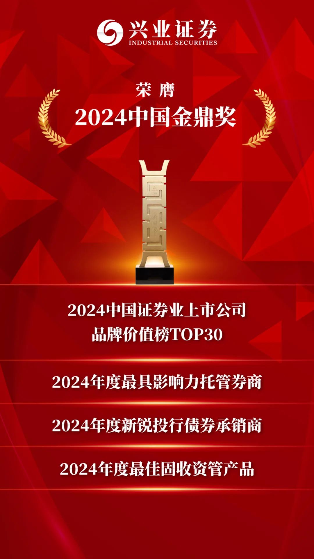 近日,由《每日经济新闻》主办的2024年资本市场高质量发展峰会在深圳举行。兴业证券喜获2024年度最具影响力托管券商、2024年度新锐投行债券承销商、2024年度最佳固收资管产品,同时再次荣登“2023中国证券业上市公司品牌价值榜TOP30”。