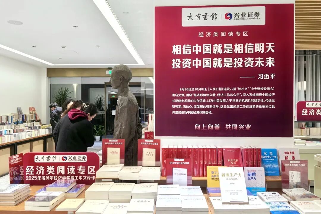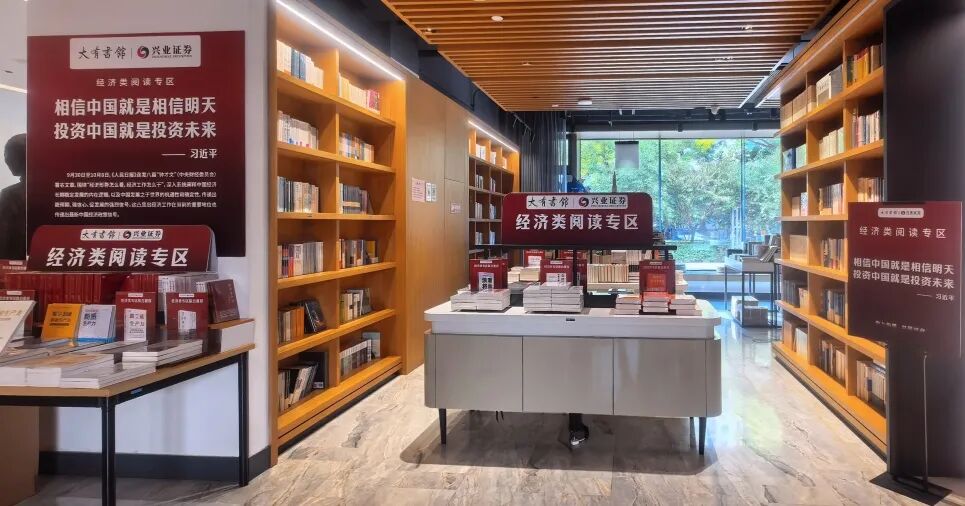 大有书馆是由中央党校出版集团主办的综合性文化企业。兴业证券携手大有书馆打造红色金融品牌,在中央党校南北校区筹建金融书籍专区,目前已开设“兴业证券·中国经济专区”,集中展陈《习近平经济文选》《习近平经济思想学习纲要》《习近平关于金融工作论述摘编》等重要读物,持续放大中国经济长期向好的政策强音。
