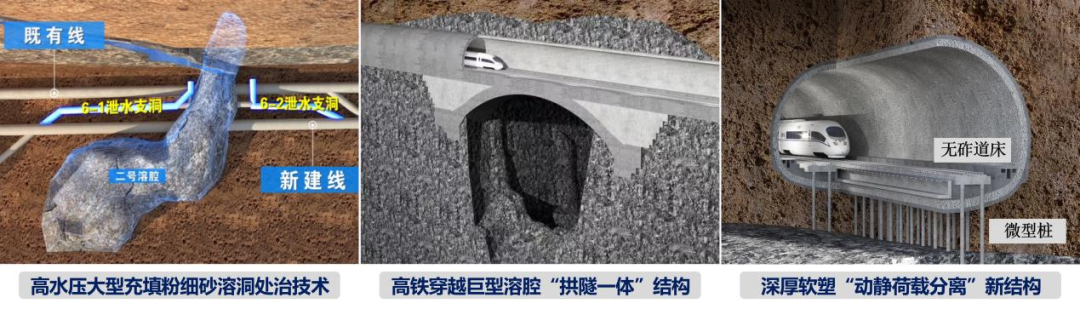 复杂岩溶隧道灾害防控与建造关键技术聚焦隧道工程中最具挑战的岩溶地质问题。项目团队系统揭示了涌水突泥灾变机制,创新提出“减压固岩”“动水注浆”“分区排水”等关键技术,研发新型注浆材料与智能识别系统,实现灾害超前预警与精准防控。该技术已成功应用于贵南、成贵、成昆等17条铁路隧道和多个高速公路项目,极大提升复杂地质条件下隧道施工的安全性与环保性。