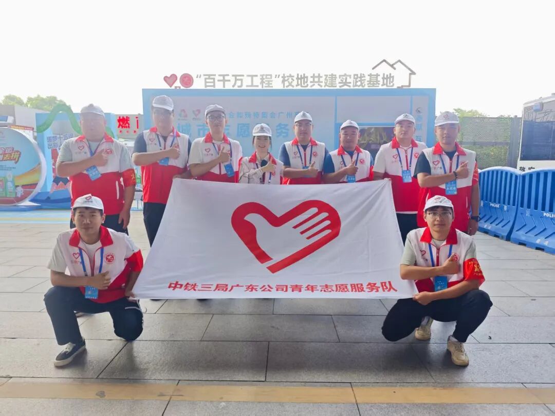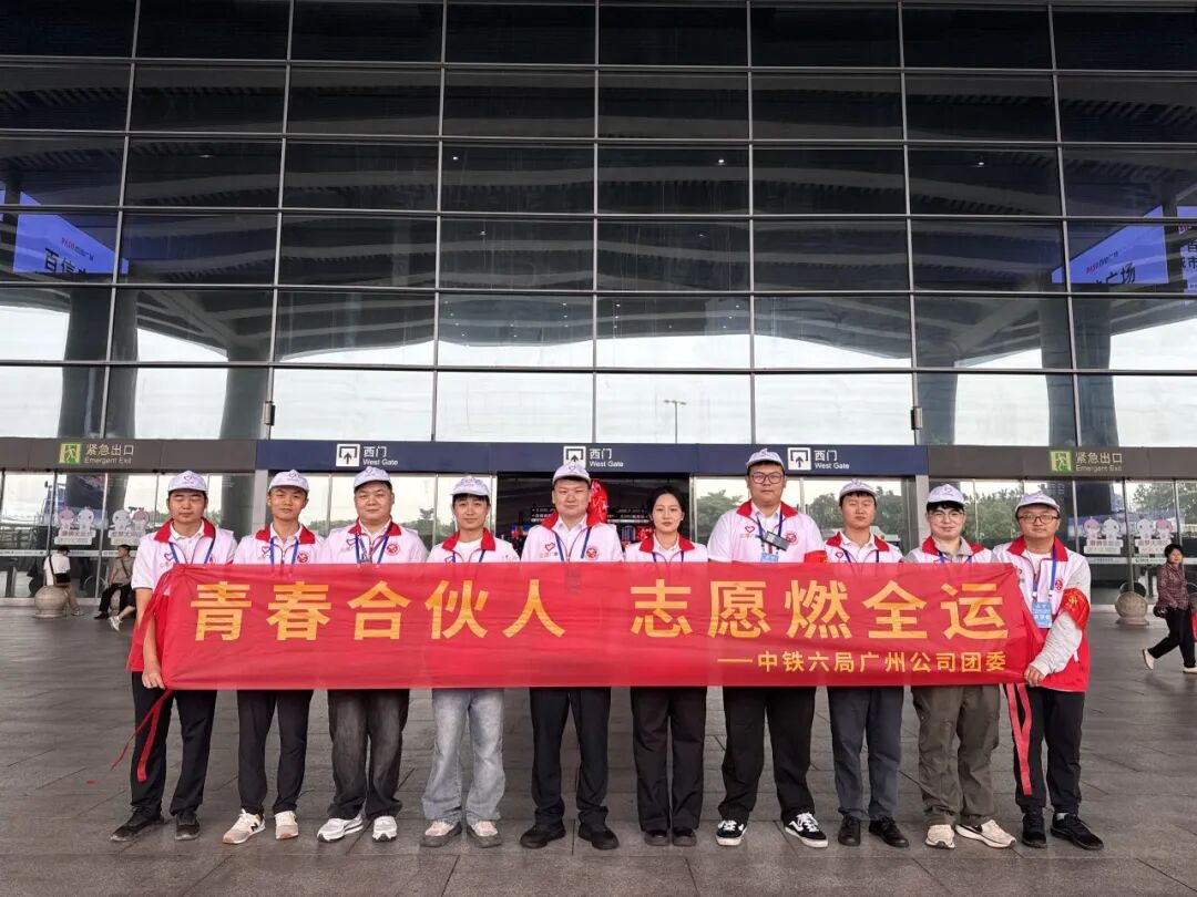 中铁广州局全力做好志愿服务保障,组织发动职工,投身志愿服务,彰显青年担当,积极参与第十五届全国运动会城市志愿服务站志愿者遴选,共有16人成功入选城市志愿服务站志愿者,全力配合赛会组织单位,承担赛事周边区域秩序维护、交通引导等工作。