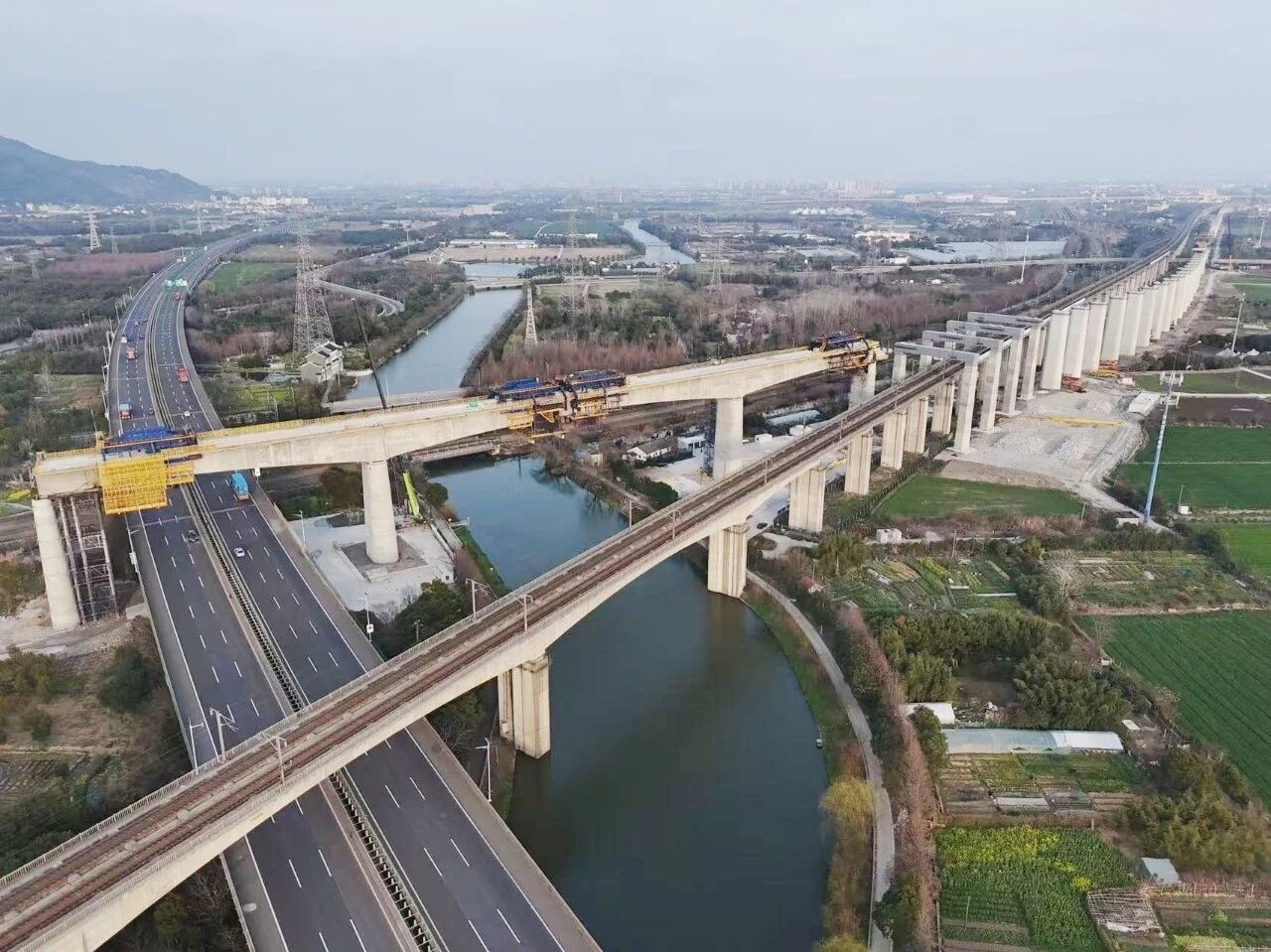 通甬高铁跨宁波绕城高速特大桥121米连续梁顺利合龙
