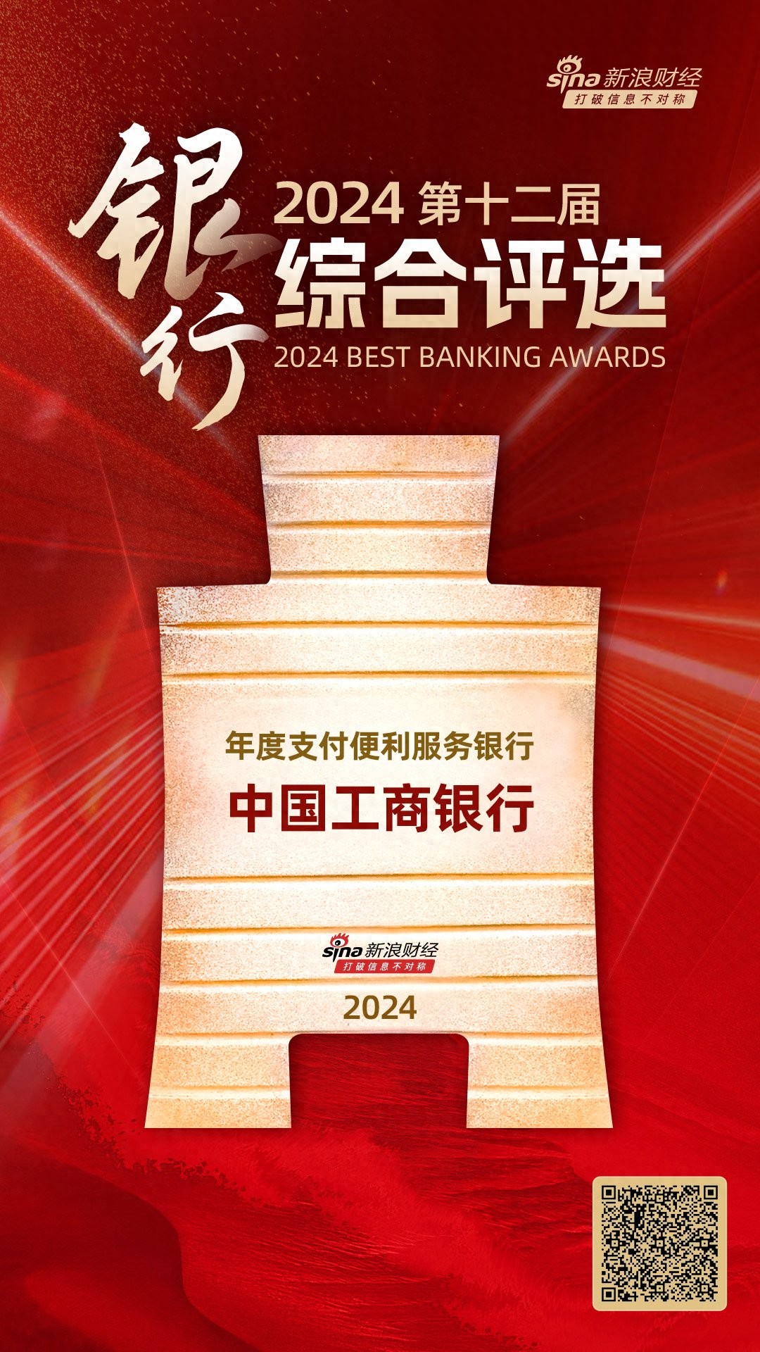 1月23日金融一线消息,由新浪财经主办的“2024(第十二届)银行综合评选”活动获奖名单今日正式揭晓!中国工商银行获评“年度支付便利服务银行”。
